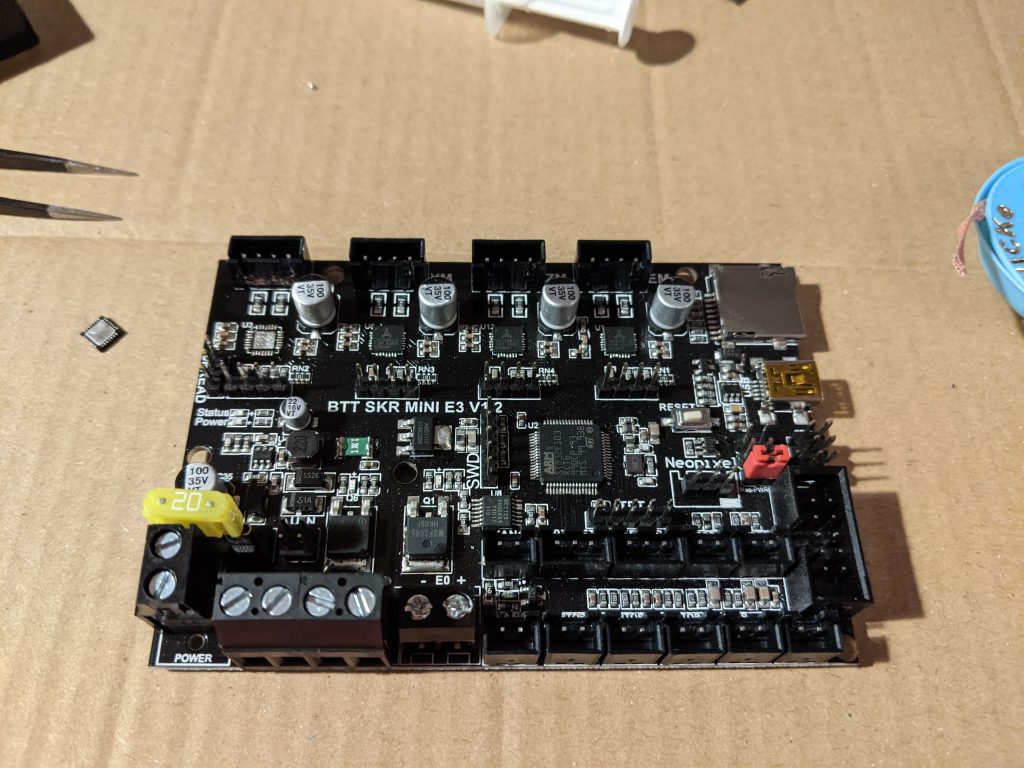 My friend’s SKR E3 mini stopped working and reported ‘TMC CONNECTION ERROR’, the info that came back from an M122 command looked like the X axis driver was dead, googling revealed others having the same issue.